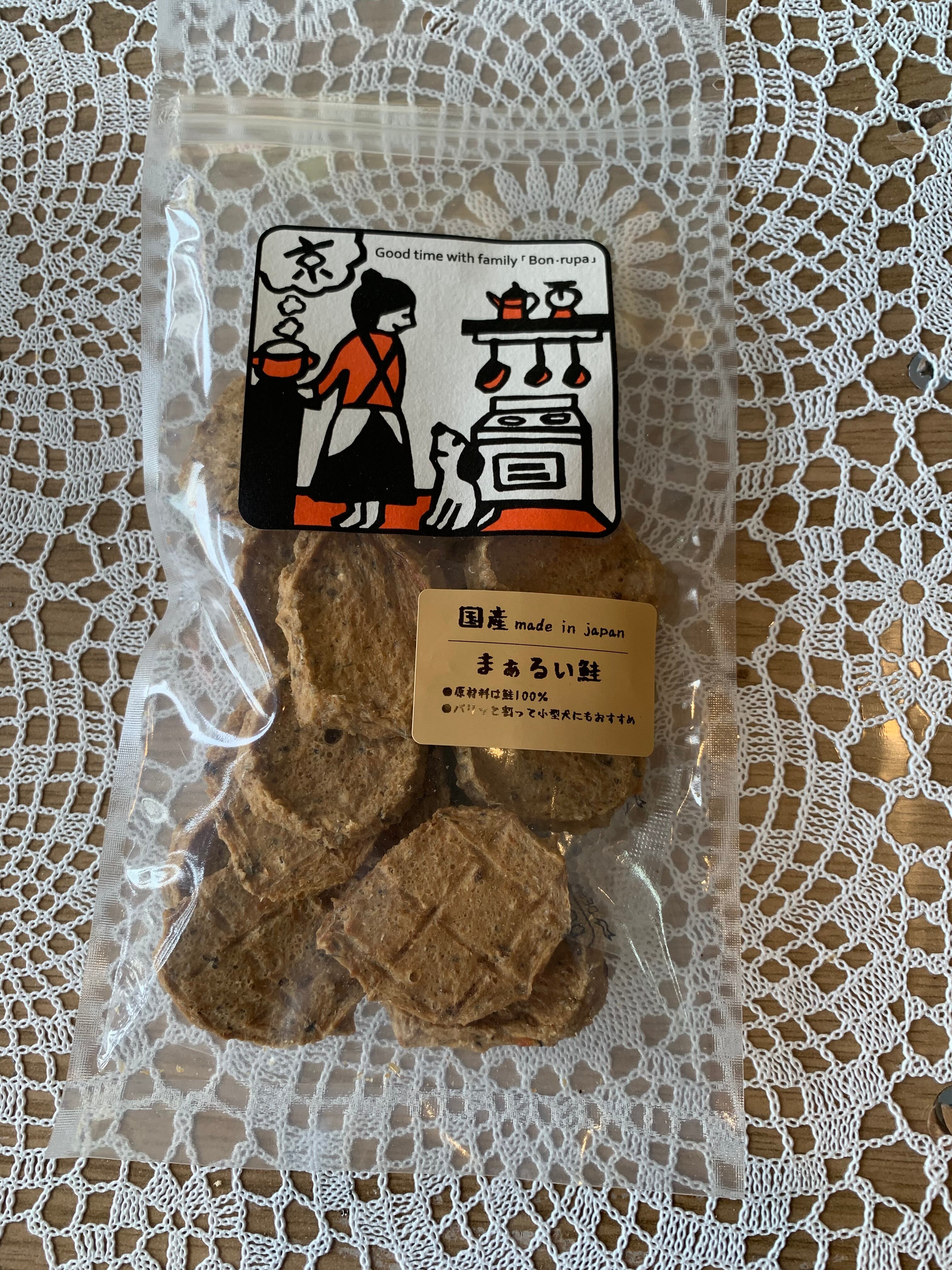 新鮮な鮭を使用し、丸いチップスタイプに仕上げました。薄く仕上げていますので老犬にも与えていただけます。